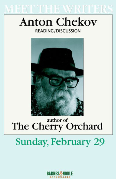 She said she was “shocked” and “outraged” at how Barnes & Nobles would kick out an author who was trying to give a reading. She even walked up to a security guard who informed her that “Chekov” was not scheduled to read at the store. Offering my desire for “a souvenir” as reasoning, I excused myself for a moment to pick up one of the Chekov posters just in case the mission was going to be repeated in the Chelsea B&N. At one point she thought out loud that perhaps he wasn’t the real Chekov, but quickly dismissed the thought and returned to being furious with Barnes & Noble about how they treat respected playwrights. The woman asked me if I knew anything about Chekov and when I feigned ignorance she continued to tell me that he was a great playwright with many famous works and that she was currently in rehearsals for another Chekov play, “The Seagull,” and considered herself lucky to happen upon a chance reading by the author. As our conversation neared an end my fellow outraged listener too looked for a souvenir.