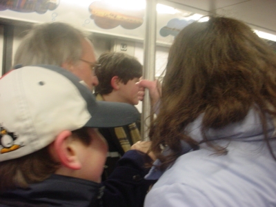 In the depantsing car on the way down there were about three children (about 4 to 6 years old), a mother and her friend, and another family with a stroller in the way of the exit. Thus, there were a bunch of us dropping trou in front of the happy family outing. The parents were exchanging looks of fear and anger, and were glad to get off at 86th St. My turn to go. We pull in at the next stop and a few of us go to the next car.