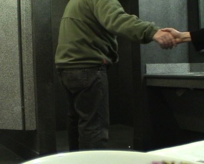 I have never been so moved and excited about any other performance art in my life. It had all the ingredients of a good play. In fact why not a play so the world would see the hidden message which is: we all put on our pants one leg at a time, we all go potty and some of us wash our hands afterwards. Some employees are supposed to wash their dirtly little manos at times and I don’t see evidence of this in your little segment. I have always believed that videos in the bathroom are the only place they should be legally. If a person is working in food service and he isn’t washing his or her hands than we are all at risk of hepitis or worse. Lets see a performance where you go and pretend you are installing video cameras. I bet people would freak. This is the last bastion of privacy you see. In California where I live it is against the law to video people in restrooms. I know because I was a reporter at a college newspaper and we had a rash(pun intended) of breakin vandalism that was causing the schools millions of dollars through the years. Could we put in a vidio camera? NOOOOOOOOOOOo!