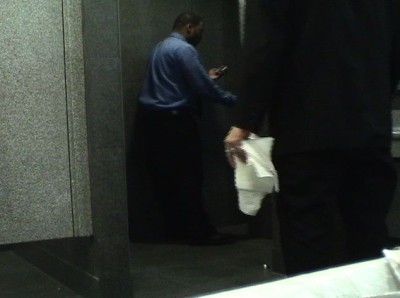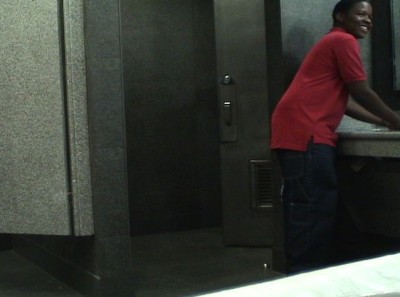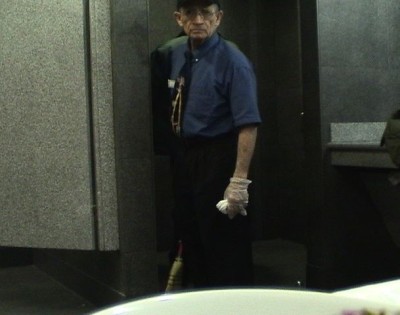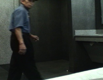 A second employee entered the bathroom, Rafael. He sweeps and leaves, giving Simmons a suspicious eye, but not responding to Simmons’ friendly banter.