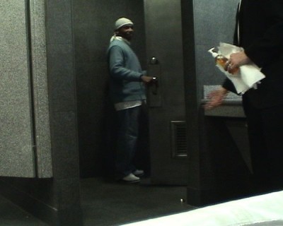 McDonald’s employee #2 entered. Rafael. I introduced myself. He swept and left. Various “agents” entered the room and sequestered themselves in a stall to take notes.