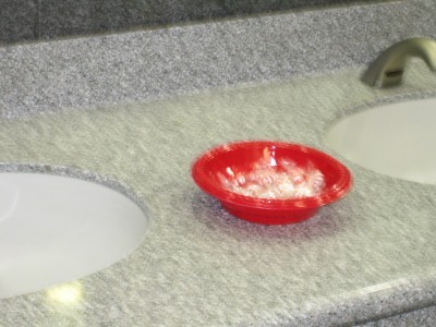 A gaggle of English school boys entered and helped themselves to mints. Followed by their chaperone who came to make sure that I wasn’t some toilet pervert. They quickly recognized how professional our “operation” was and they washed up and left satisfied.