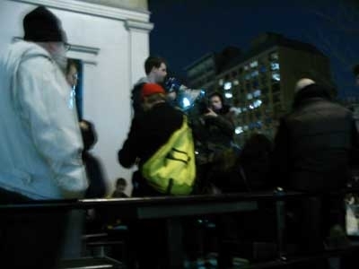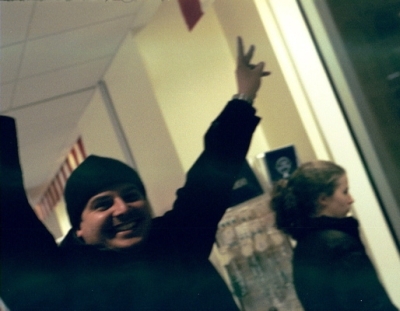 I got to Union Square a little early, and had some fun watching the black clad mass of totally unsuspicious people grow. I met up with a few familiar faces, and just relaxed. I was assigned window 23 and when the time came to take the building, I had a hard time not cracking up, simply because we looked totally shady filtering into the building. Although, where I was we didn’t elicit any kind of response from security or store employees. I’d be interested to find out when they realized something was happening in their stores. I was in the closeout section of Filene’s Basement so nobody was hanging out there. You could smell the desperation and loneliness on the clothes. I know I could have set fire to the place without interference.
