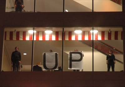 Well since it was my first mission I was pretty nervous but luckily I was on the top row with some guys that had apparently done a lot of missions; I was calmed by that. About 5 minutes before go time, a few employees came up the escalators to the top floor where we were and questioned the guys in 1-6, and I started getting a littler nervous but I stayed put anyway. It ended up that they were laughing and thought it was great, I even heard from one of the guys on my side that they were dancing with some of them. Personally I couldn’t take my eyes off of the huge crowd forming in front of us. We worked as a group really well on the top left side of the building with the counting and all, and I think we pulled it off rather well. Dispersing was easy. I managed to be the only one to hop in the elevator where the operator asked me, “Are there were a lot of people outside?” I just replied “I guess so, Union Square on a Saturday, ya know? Great mission. It made my Spring Break.