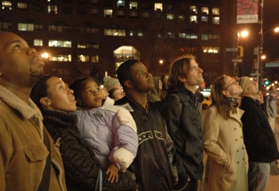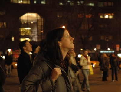 Just wanted to drop a quick note – I’ve actually been on your mailing list for the past year and a half or so, but I just found out today (through the Gothamist website) that the Look Up More mission in March 2005 was done by you guys. I was so happy to find out, because the night of that mission was the night of my girlfriend’s and my first date, and we happened to be sitting in the park, and saw the dancers. We were so confused but highly entertained, and spent a good amount of time sitting there, taking it in and laughing about it. We’ve been together for the 2 years since then, and every so often we’ll still bring that event up, wondering who was dancing in