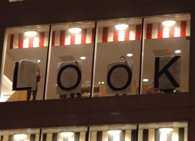 For this mission, I was in “Window 27” and held up the letter `L’ in “LOOK UP MORE”. We all assumed our positions in front of our respective windows and watched as the crowds began to gather. I was very anxious to begin, and the people gathering in front of the windows to watch our spectacle actually made us want to get started even quicker – we knew it was going to be great! Everybody had such great energy right from the start, so once the first signal was given, I heard someone say “Let the games begin!”