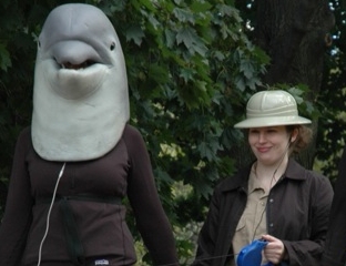 thank you! it was a lot of fun. i had the giggles the whole time. loved how some people REALLY got into the zombie walk. two other great moments: when we were told to look for someone suspicious and all of a sudden a random “bystander” turned into a dolphin-kidnapping crook with a bandanna over his face, reading “what to expect when you’re expecting,” that was hilarious. then playing rock paper scissors, looking at the guy next to me and realizing that HE HAD NO HEADPHONES. he was just playing along.