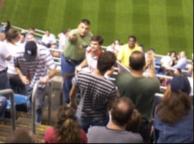 Unfortunately, Yankee Stadium does not allow any video cameras or backpacks; so smuggling in filming equipment would be nearly impossible. Agent Lathan decided to pull the prank anyway, even if we couldn’t film it. Fortunately several members of our group brought cameras to the game and were able to snap photos and take some footage using their camera’s “movie mode”.