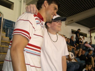 Rob took his seat and watched the last two innings. Every few minutes people would walk up to him to say hello and snap a photo. The guys behind us started up another “Rob’s retarded” chant. Rob just smiled and waved.