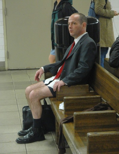 It was really cool looking out the window as the train pulled into the stations. Some stops had upwards of fifty pantless riders waiting to board. If you were seated on the train looking out the window you could only see the people on the platform from the waist up, which made for a funny reveal when the doors opened on their bare legs. There were several riders who stood out this year. We had a few businessmen: