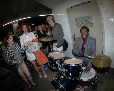 At 125th Street, everyone exited the train and moved to the downtown tracks to take the train back to our starting point. There was a drummer on the platform and as folks waited an impromptu dance party broke out. Pantless people danced to the drummer’s beat while trying (unsuccessfully) to coax him to remove his own pants.