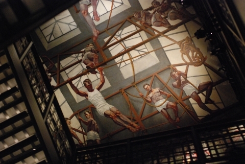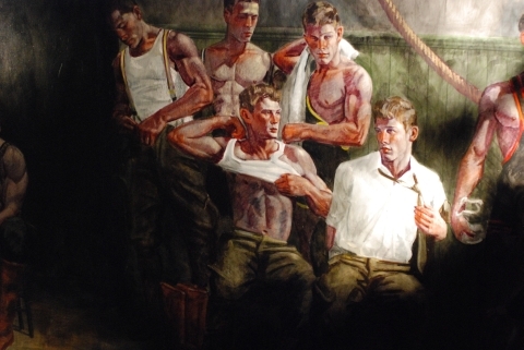 There’s even a four-story tall mural of shirtless men working on boats.