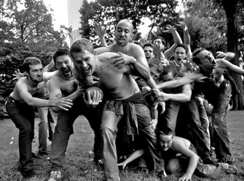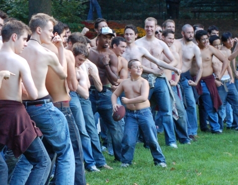 At 4:37 the other 110 joined in on the fun. Within seconds everywhere you looked there were shirtless men.