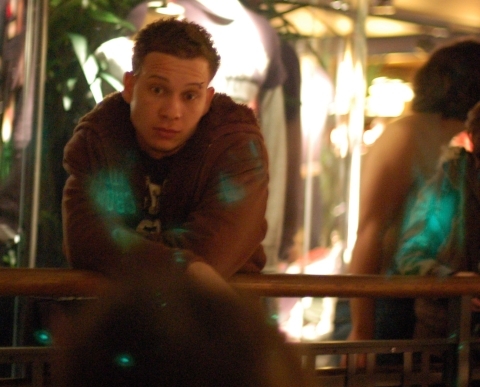 He seemed to loosen up later, as he smiled and happily posed for photos with other guys who came by.