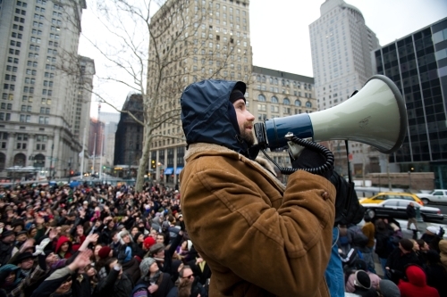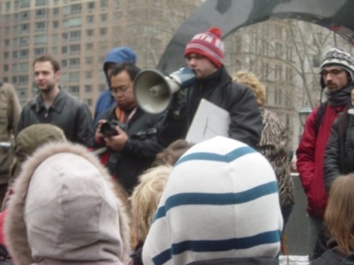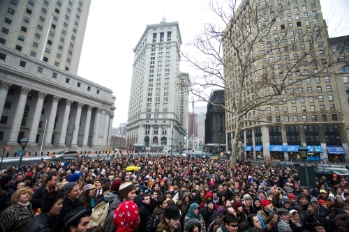My cousin, Agent Fairey, recently moved into an apartment building right next to Foley Square, so we were able to get some great shots of the crowd from her roof.
