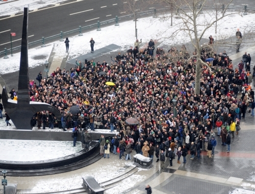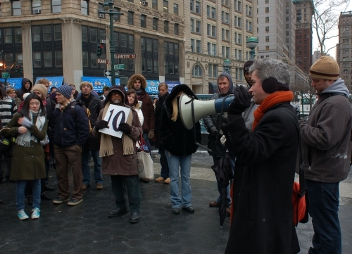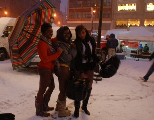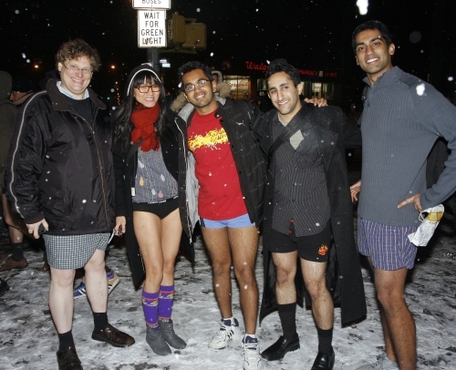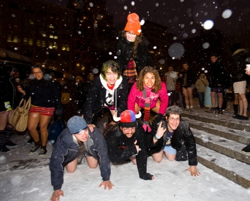 It was about 30 degrees out and still snowing when we made it to Union Square, but everyone was having too much fun to put their pants back on. Many participants hung out in the cold for over an hour, laughing with friends new and old.