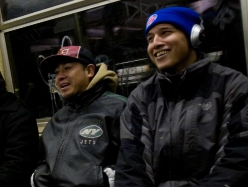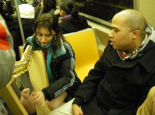 In 2007, we ran into a drummer at the 125th Street stop. A huge mob of pantless folks danced to his beat in what turned out to be a highlight for many participants. This year we ran into the same drummer again! I said hello to him, and he responded, “I missed you guys last year!” We turned around at 96th last year rather than 125th. He put on another great show to the delight of many pantless dancers. Jody Avirgan from WNYC radio did a fantastic interview with him after his performance; listen to it here.