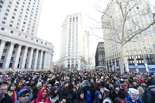 The crowd at Foley SquareAfter having 1,200 show up in a snow storm last year, we knew this year’s attendance would be huge. When Justin Timberlake is tweeting about it, you know it’s going to be big.
