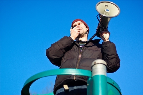 Do you need pants?All of the No Pants Generals got together to take a group photo at the end. I can’t believe we had nine megaphones.