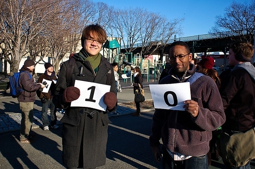 With thousands of people standing in Union Square in their underwear, some participants got the bright idea to get everyone to