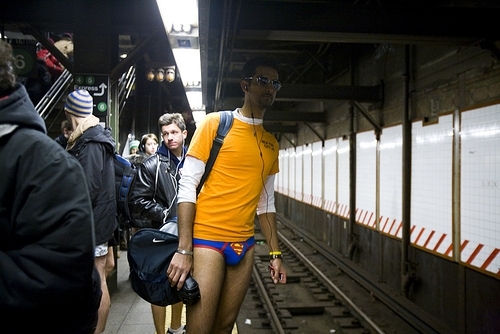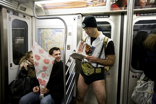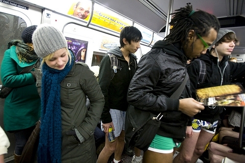 On Sunday, January 10th, 2010 over 5,000 people took off their pants on subways in 44 cities around the world. In New York, our 9th Annual No Pants! Subway Ride had over 3,000 participants, spread out over six meeting points and ten subway lines. Enjoy the video first and then go behind the scenes with our mission report and photos.