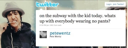 Finally, I’m not sure if Pete Wentz, the bassist for Fall Out Boy, ran into us in New York or Los Angeles, but either way, this cracked me up: