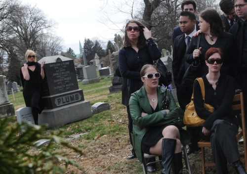 Actors laughing between takesWe worked under the assumption that at any moment we were going to get caught and asked to leave. Being a National Historic Landmark, the cemetery is public property, but they have lots of rules and regulations and surely filming a fake funeral is not allowed. We got all of the shots we needed as quickly as possible. Once we had all of the important stuff in the can, we decided to stage some more over-the-top moments, on the off chance they worked. This led to some pretty ridiculous bits that definitely couldn’t be used in the main video if it was going to be believable.
