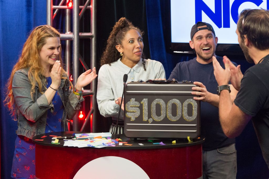 For the “returning champions” None of Your Quizness, we cast our improviser friends Lou Gonzalez, Chrissie Gruebel, and Brian Urreta from the great improv team The Mannequin Room. They were secretly given all of the answers in advance, allowing us to make sure the real people we were surprising always won.