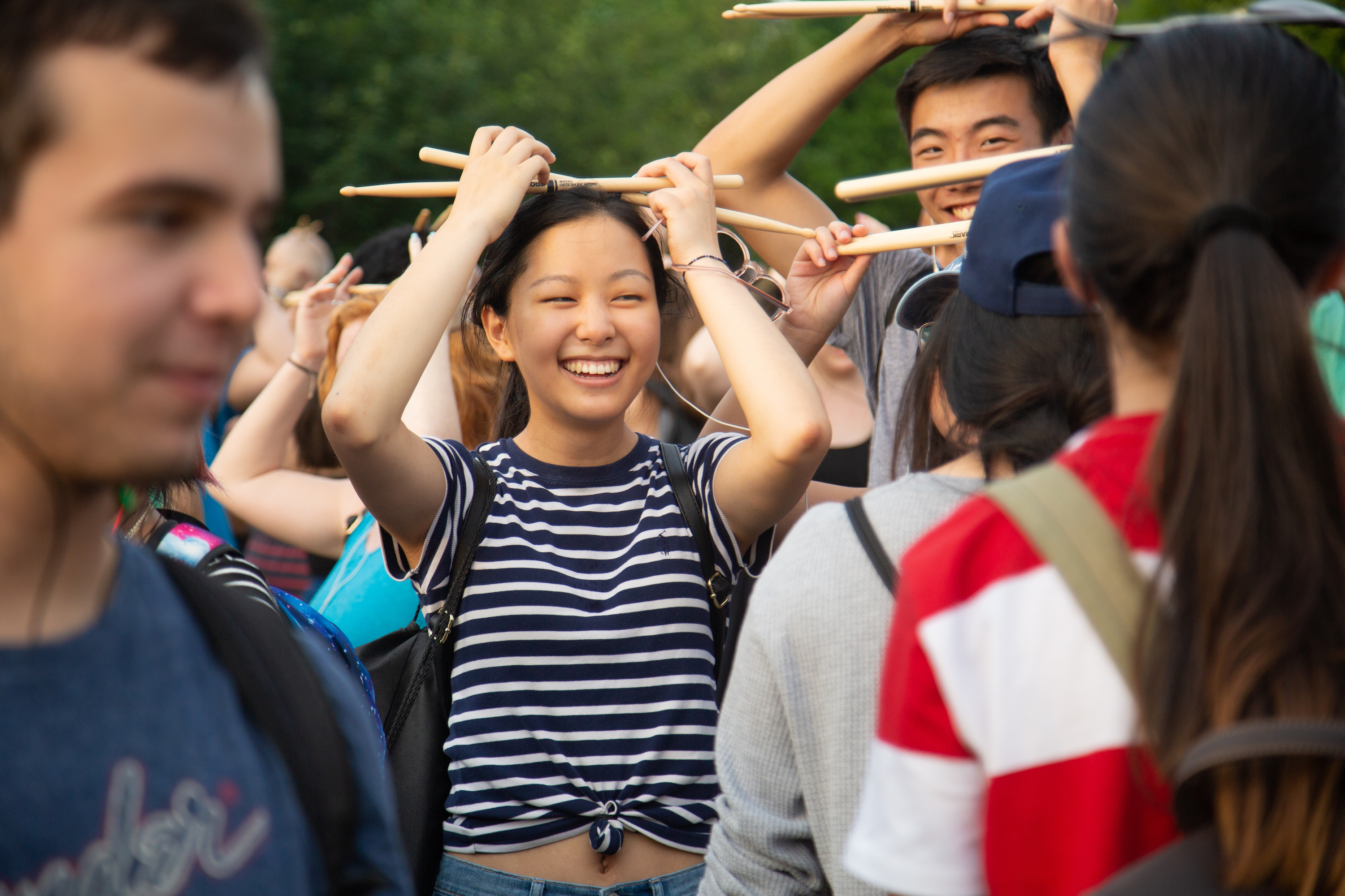 For our latest mission, thousands of people followed secret, synchronized instructions delivered via headphones in Brooklyn Bridge Park. The crowd of around 2,000 people created real-life Instagram Boomerangs, cheered for random joggers, and made music together with drum sticks and household objects, surprising the New Yorkers and tourists in the park. The drum sticks were generously donated by Promark, and the event was a partnership with Make Music New York. This was all part of our our fifteenth annual Mp3 Experiment event.