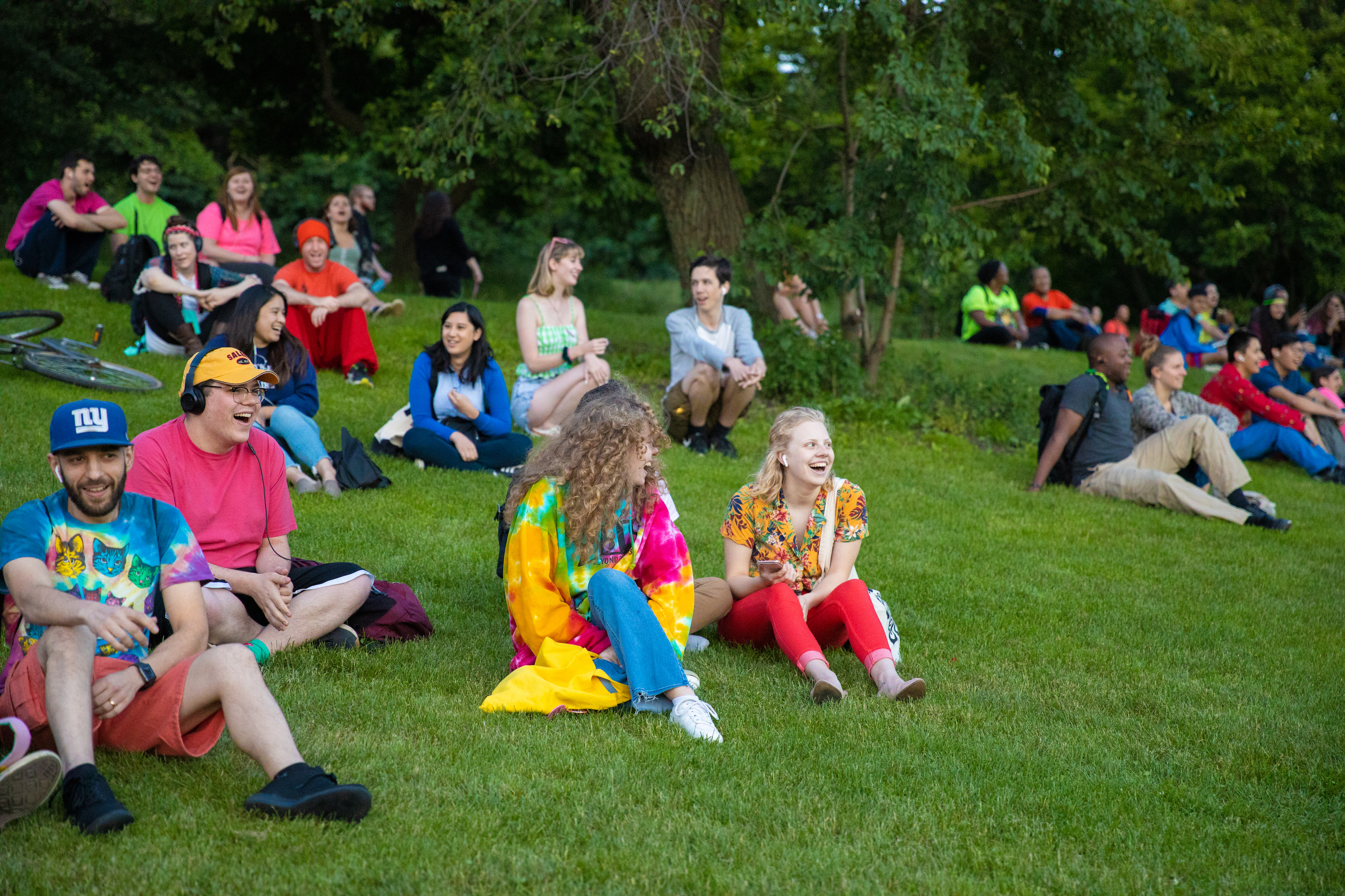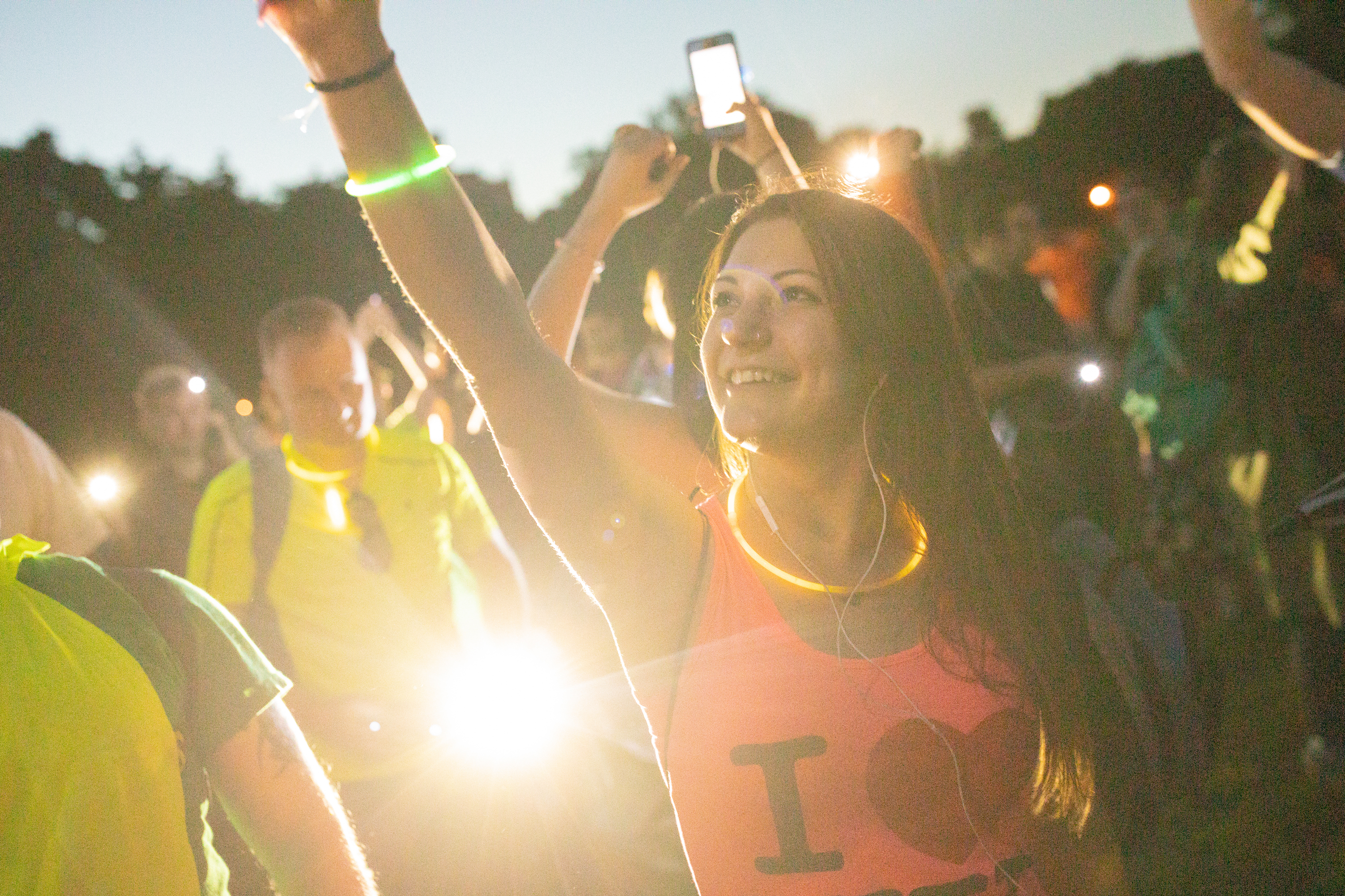 For our latest mission, thousands of people followed secret, synchronized instructions delivered via headphones in Prospect Park. The crowd of around 3,000 people surrounded the Long Meadow and on cue made a mad dash across the field. The group played some intense freeze tag, high-fived strangers, made music together with thousands of instruments, acted out movie moments, and created a human-powered light show with flashlights, glow sticks, and a variety of LED objects. The event finished with participants taking their headphones off and connecting their phones to Bluetooth speakers, creating a massive surround sound experience with 3,000 speakers. The event was a partnership with Make Music New York and the Prospect Park Alliance. This was all part of our our sixteenth annual Mp3 Experiment event.